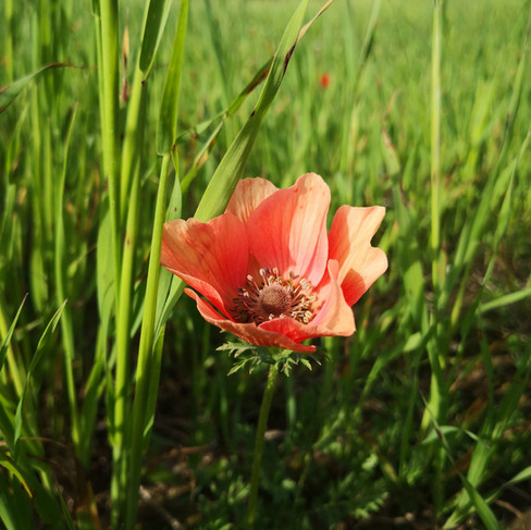 This first photo shows a common sight in the NW Negev area. The anemone is obvious but look what is accompanying her. To the left are wild oats. They are a forerunner to most wild barley growing there as the old timers understand through observation.